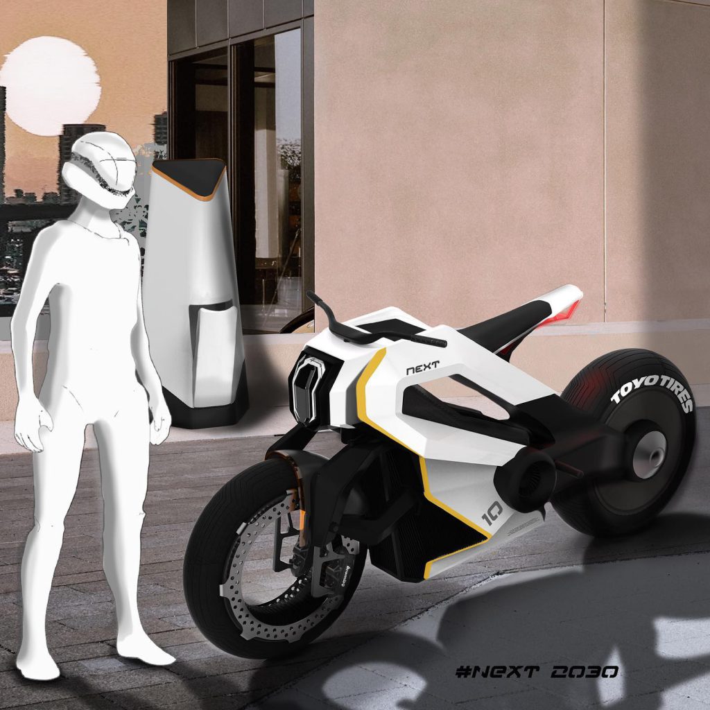 今年比賽主題為「跨界電能 世代超越」,回應永續低碳、智慧聯網與人本設計的大趨勢,創造全新移動方式與載具型態的新世代電能車。品設系林福年老師指導,品設四乙劉軒瑋、李昱德設計作品「Future Urban Ecosystem」,以生態學角度打造出一套「未來都市」交通載具系統,搭載空氣過濾、無線充電模組,仿樹木進行光合作用的生物特徵,結合車輛進氣和淨化功能,讓車輛在行進中亦能清淨空氣,從製造汙染的來源轉變為如同一棵棵樹木般淨化都市叢林空氣的二輪交通工具。